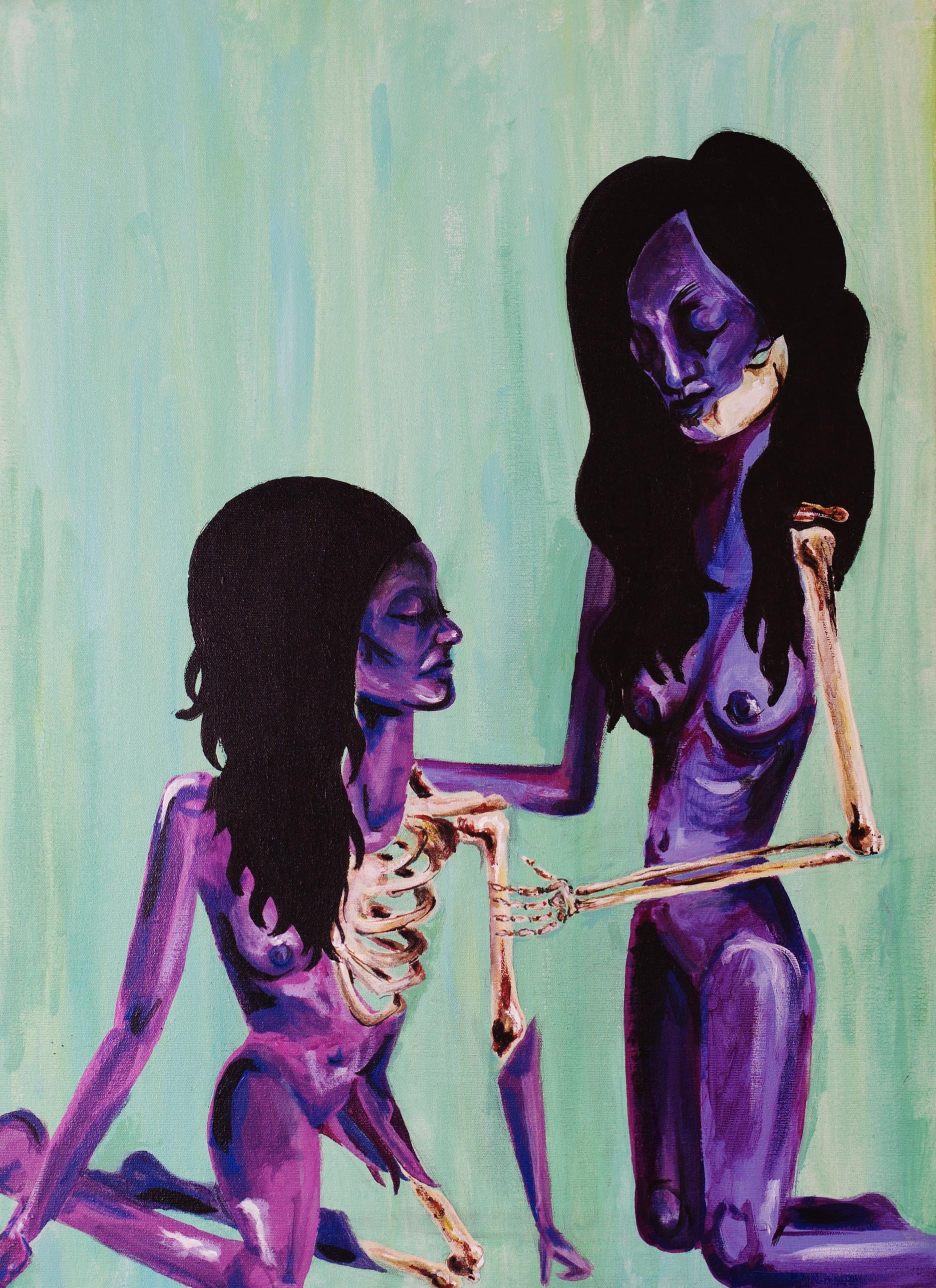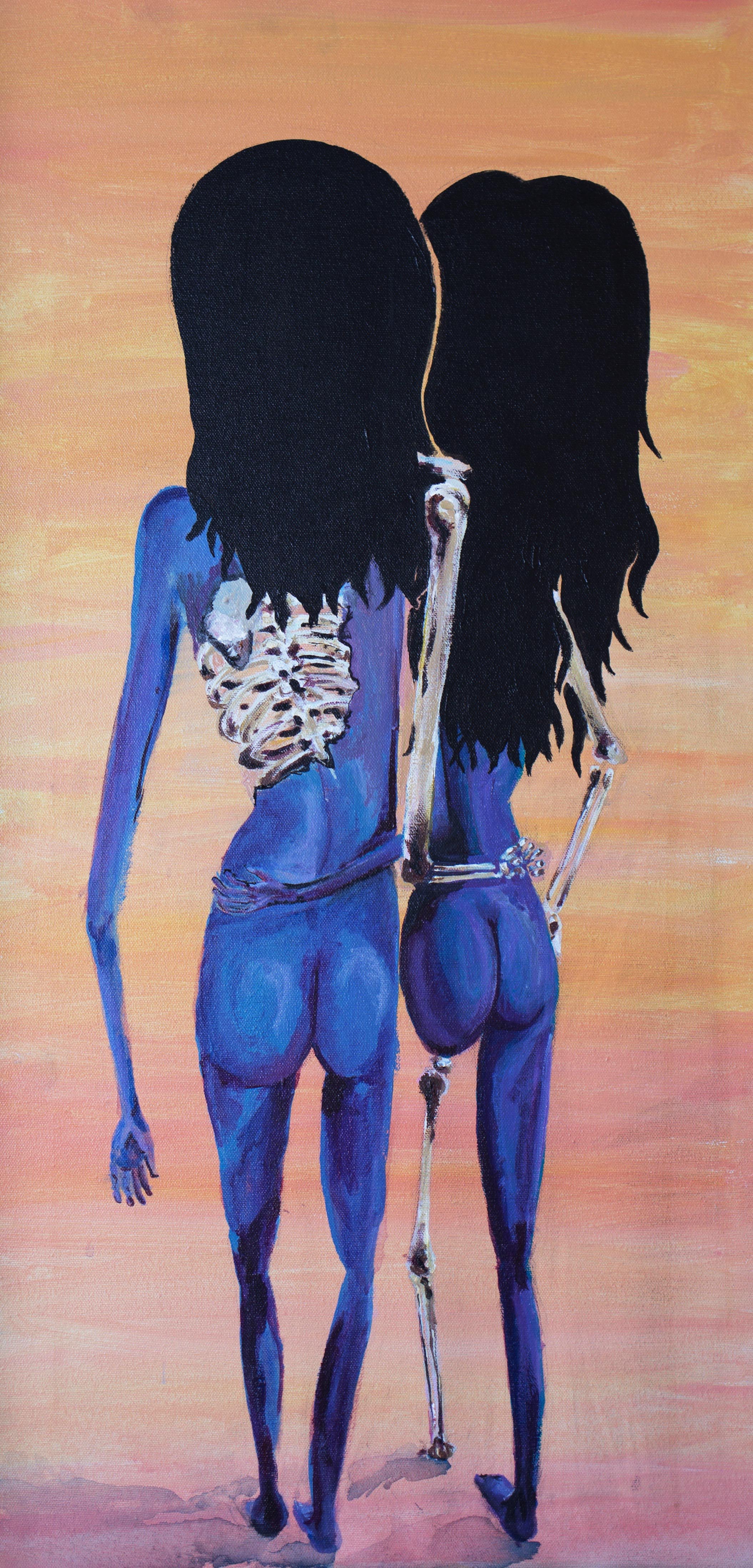 Dark in the Alone contains work reflecting my own personal struggles as well as work concerned with society roles and expectations. It draws parallels between the beautiful and the ugly, creating truly distinct and uncomfortable works of art. Much of my work is inspired by dreams, experiences (positive and negative) and those I’m surrounded by. My work serves as a form of communication, expressing values and opinions, some of which I’m yet to be aware of.